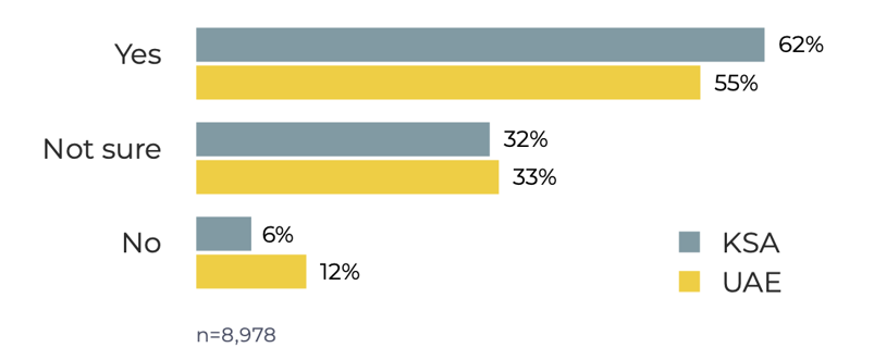 When asked if they felt they were taking care of their health as much as they should, 32% of respondents in Saudi Arabia and 26% in the United Arab Emirates felt they weren’t doing enough for their health.