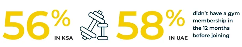 Well, when asked about their past gym experiences, 56% of new gym members in Saudi Arabia and 58% in the United Arab Emirates said said they didn’t have a gym membership in the 12 months before joining. That means a big chunk of members are new to the gym scene. This highlights the market potential for expanding health and fitness opportunities in these countries, as awareness and the desire to become healthier continues to grow.