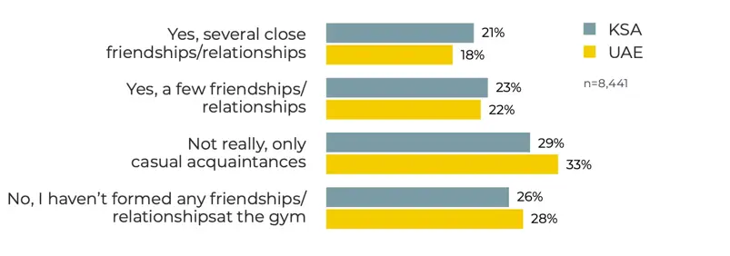 THE GYM IS A PLACE TO CONNECT SOCIALLY: NEARLY HALF OF GYM-GOERS IN SAUDI ARABIA AND UNITED ARAB EMIRATES HAVE BUILT MEANINGFUL CONNECTIONS WHILST WORKING OUT.